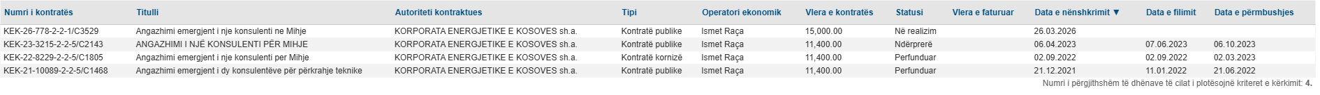 Rasti bëhet edhe më i rëndë kur shihet e kaluara e tij në KEK. Raça është rikthyer vazhdimisht si konsulent në vitet 2021, 2022 dhe 2023, me kontrata 6-mujore gjatë kohës kur KEK-un e drejtonte Nagip Krasniqi, tash nën akuza për keqpërdorim të detyrës.