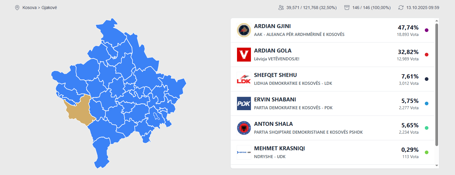 Bazuar në këto rezultate, edhe Gjakova do të ketë përsëri zgjedhje më 9 nëntor në balotazh.