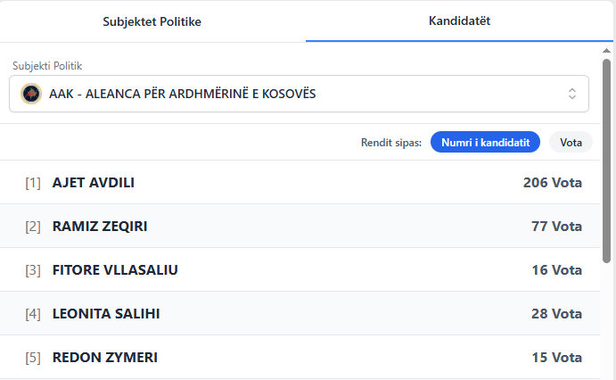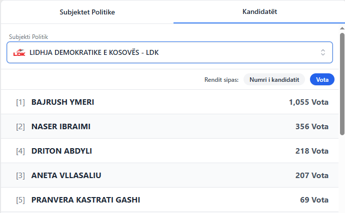Përditësohen rezultatet në Prishtinë, ky është asamblisti me më së shumti vota nga LDK-ja