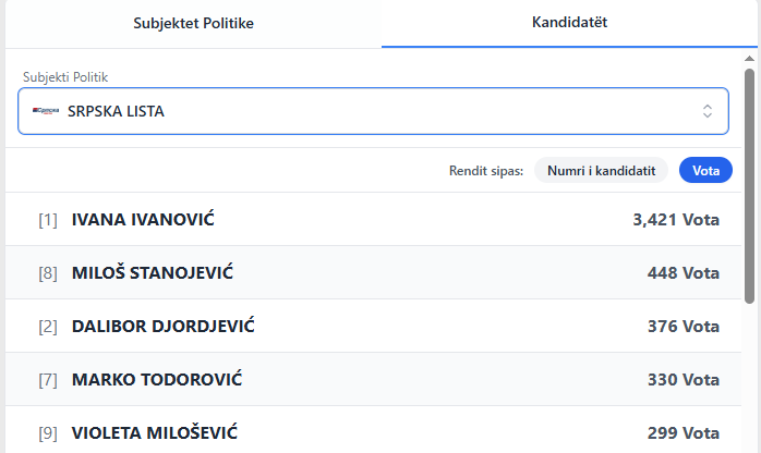 Më poshtë mund të shihni pesë kandidatët më të votuar nga secila parti në Novobërdë: