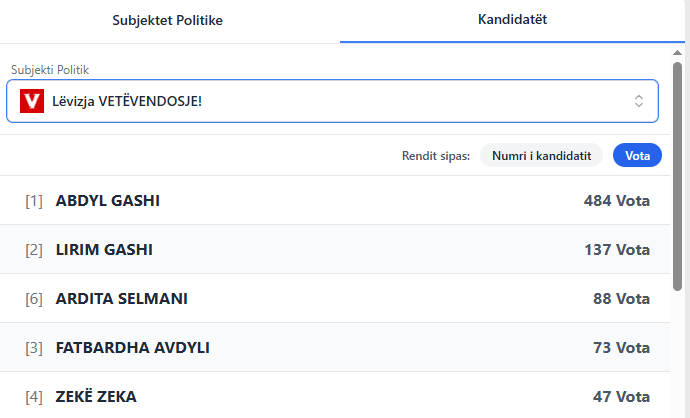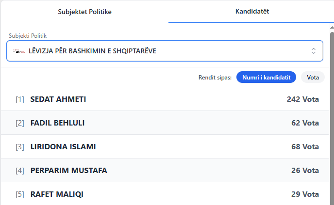 Bazuar në këto të dhëna, shihet se një kandidat i PDK-së për asamble në këtë komunë nuk i doli në përkrahje as vetes, shkruan lajmi.net