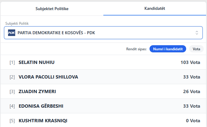 Kushtrim Krasniqi nga PDK, ka marrë 0 vota.