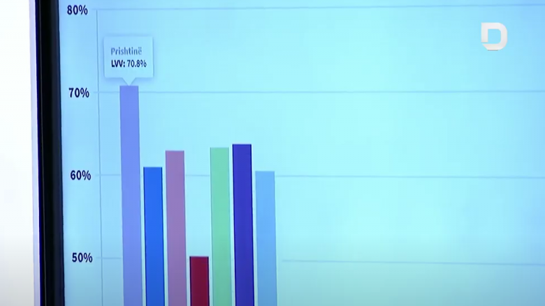 Sipas tyre LVV ka marrë në Prishtinë 70.8%, Mitrovicë 61%, Peja 63%, Prizreni 50.3%, Ferizaj 63.4%, Gjilan 63.8% dhe Gjakova me 60.6%.