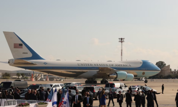 Tashmë shihet një qilim i kuq i shtruar për të në pistë. Të pranishëm janë edhe zyrtarë ushtarakë, presidenti i Izraelit, Isaac Herzog dhe kryeministri izraelit, Benjamin Netanyahu.