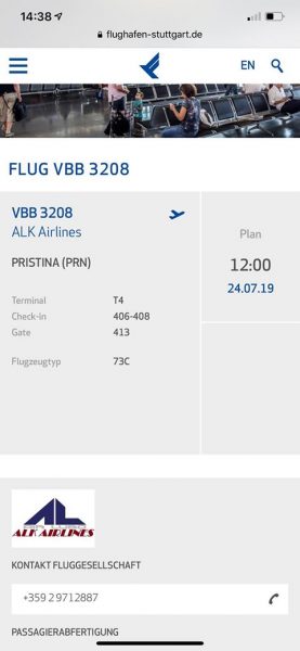 Ndërkohë në faqen e Aeroportit të Prishtinës figuron që fluturimi i linjës Stutgart-Prishtinë është anuluar.