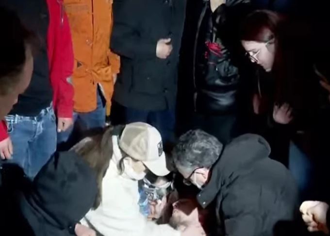 Protestuesit i dhanë ndihmën e parë në vendngjarje, ndërsa më pas u transportua për trajtim mjekësor.