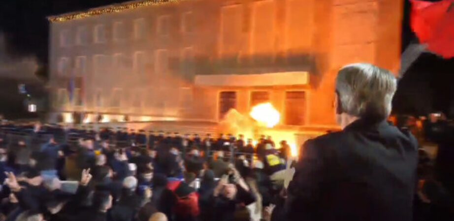 Pas fjalimit tëkryetari i Partisë Demokratike, Sali Berisha, protestuesit kanë hedhur dhjetëra flakadanë pranë objektit të kryeministrisë në Shqipëri, derisa policia ka vendosur një kordon ku protestuesit nuk lejohet të kalojnë afër këtij objekti.