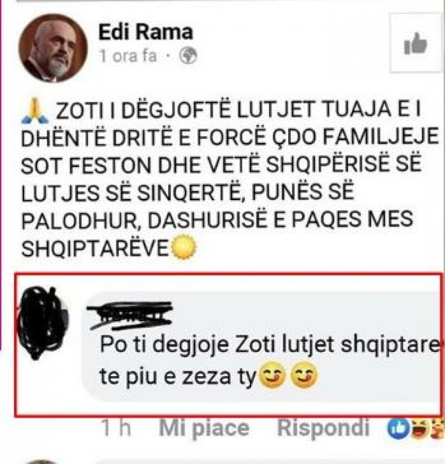 Mirëpo në këtë postim të Ramës ka komentuar një shqiptar. Shqiptari i ka bërë një koment epik Ramës.