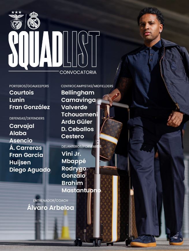 Në listë rikthehet Carreras, i cili mungoi në ndeshjen ndaj Monacos pasi që ishte i suspenduar si dhe Brahim Diaz, që ishte në grumbullim me Marokun për Kupën e Afrikës.