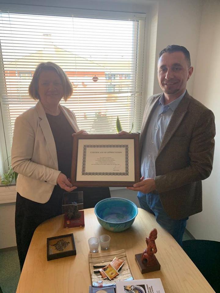 Ishte kënaqësi e veçantë për mua që sot të takohem me Kryetarin e Komunës së Nomes , ku e njoftova me historinë time gjatë qëndrimit tim si refugjatë në Norvegji, u ndjeva aq i lumtur që ia arrita sadopak të ndjehem falënderues ndaj atyre që na hapen dyert dhe zemrat në kohen kur ishim në gjendjen me të vështirë.