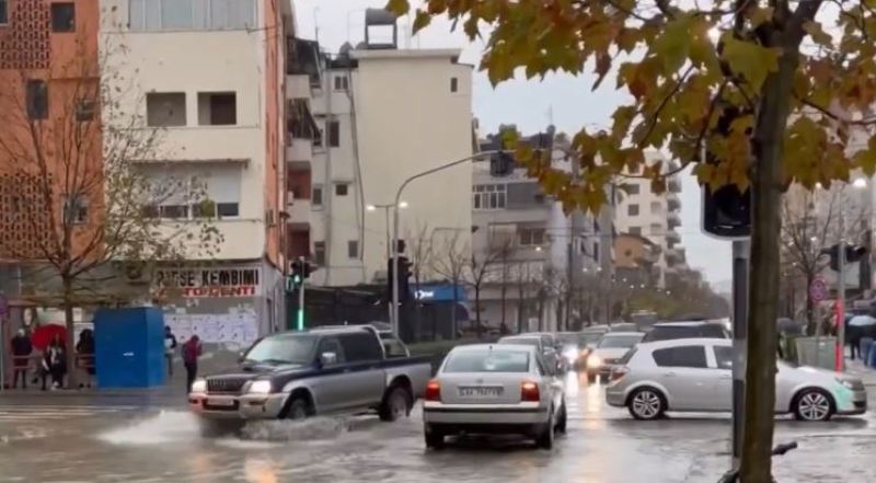 Kryqëzimi pranë stadiumit “Niko Dovana” në Durrës është bërë thuajse i pakalueshëm për shkak të prezencës së madhe të ujit në rrugë.