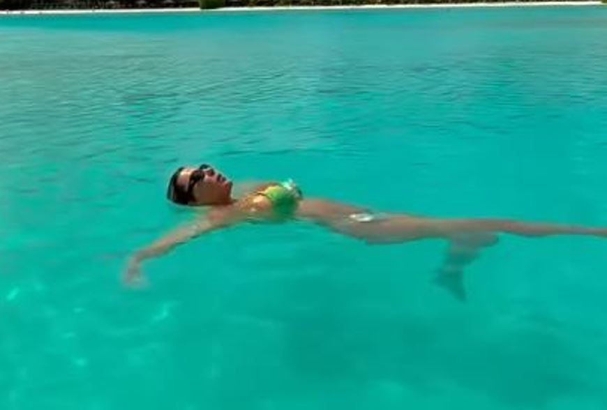 Minuta më parë ndau një video ku shihet duke notuar.