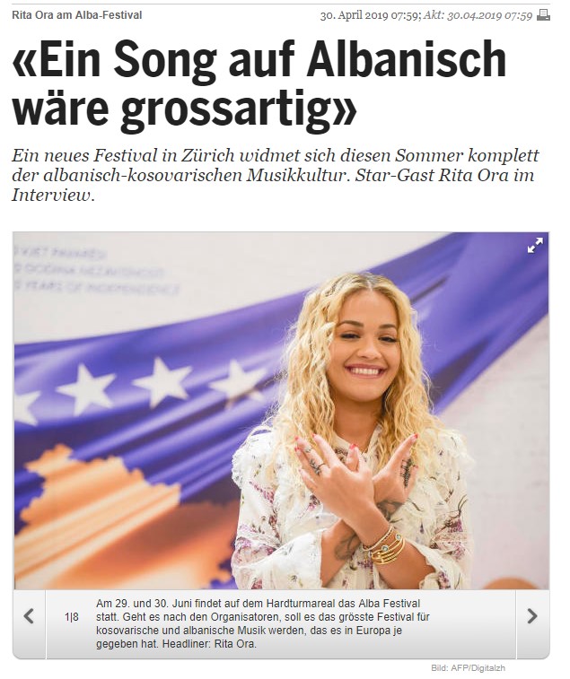 Në një intervistë për “20min” në Zvicër, Rita Ora tha se do të ishte e mrekullueshme nëse do të incizonte një këngë në gjuhën shqipe.