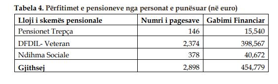 Sipas Auditorit të Përgjithshëm, për pagesat e pensioneve për këto kategori janë shpenzuar mbi 450 mijë euro gjatë vitit të kaluar.