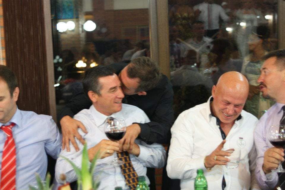 Në fotot e publikuara nga Gjinovci në Facebook, babai i tij, Arbër Gjinovci, shihet në prani të Kadri Veselit, Ramush Haradinajt, Hajredin Kuçit e Edi Ramës.