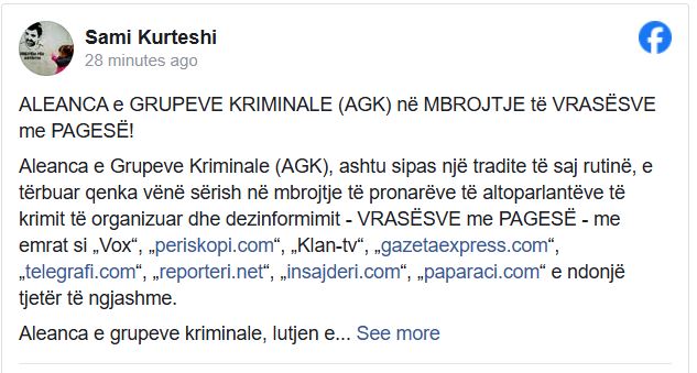 Kurteshi sulmoi edhe Asociacionin e Gazetarëve të Kosovës (AGK), që doli në mbrojtje të gazetarëve nga sulmet e Kurteshit.