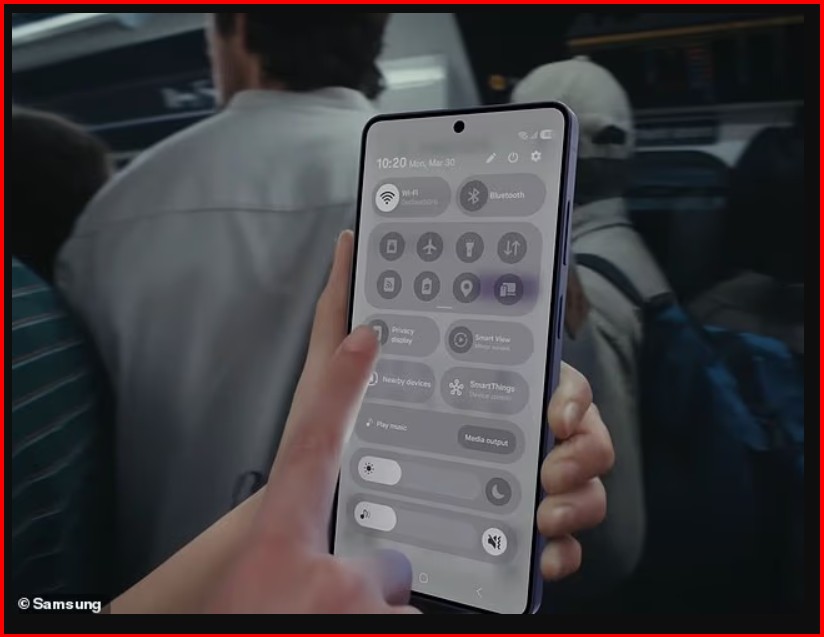 Ekrani funksionon me një lloj të veçantë pikseli që dërgon dritë vetëm drejt përdoruesit, duke bllokuar shikimin nga këndi anësor. Ndryshe nga filtrat e zakonshëm që ngjiten mbi ekran, zgjidhja e integruar e Samsung mbulon ekranin nga të gjitha këndet.