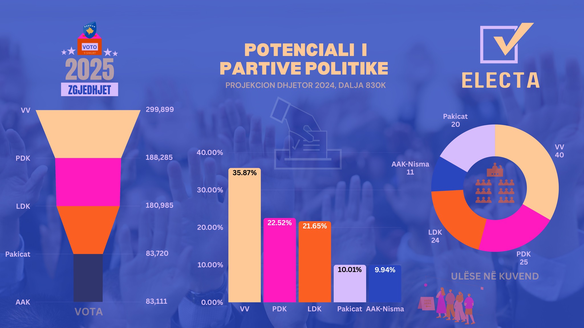 “Ky nuk është një sondazh dhe as një matje e opinionit publik. Ky është një vlerësim i potencialit të partive, i bazuar në të dhëna të plota dhe një analizë të gjerë të faktorëve sasiorë dhe cilësorë, përfshirë performancën afatgjate të secilës nga partitë kryesore”, shkori Shenoll Muharremi në rrjetin social facebook, duke e paraqitur projeksionini e tij edhe me anë të grafikës.
