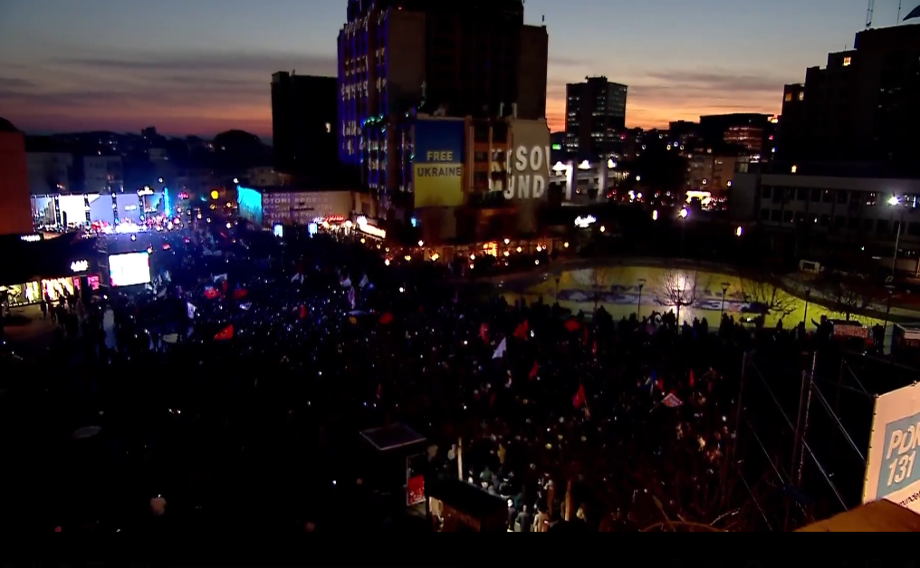 Sheshi Zahir Pajaziti në Prishtinë është mbushur plotë me përkrahës të PDK-së, të cilët po marrin pjesë në këtë tubim përmbyllës për fushatën e zgjedhjeve të 9 shkurtit.