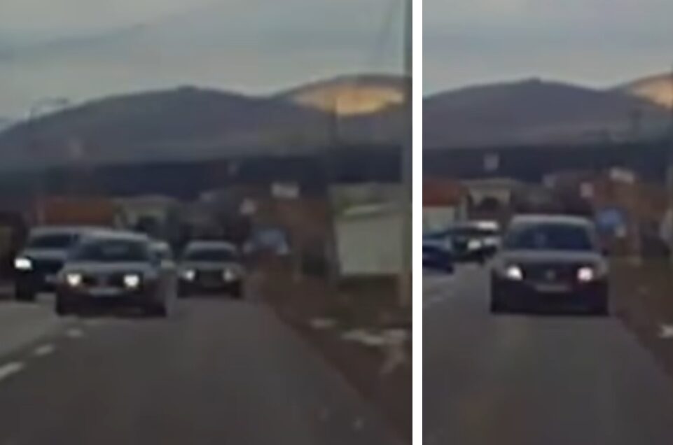 Në videon e ndarë në Facebook, shihet se si një veturë bën një tejkalim të rrezikshëm, duke shkaktuar rrezik në komunikacion.
