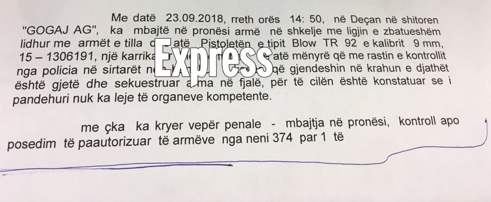 Në kompaninë që është në pronësi të familjarëve të të dyshuarit kryesor të kësaj vrasje, ndodhej edhe një armë pa leje. Në aktakuzën që ka siguruar Gazeta Express, nuk sqarohet motivi pse ndodhi vrasja, aty shkruan se Shaban Gogaj me dashje e privon nga jeta viktimën. Me tej thuhet se 18 vjeçari e merr armën e cila ndodhej në sirtarin poshtë banakut, e shënjon dhe e qëllon Agonis Tetajn.