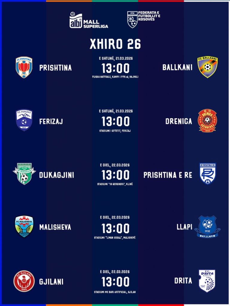 Klubet kosovare nuk do të kenë pushim veç ditës së nesërme, pasi në fundjavë zhvillohen ndeshjet e javës së 26-të në Superligën e Futbollit të Kosovës, shkruan IndeksOnline.