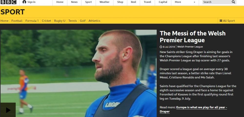 Greg Draper, sulmuesi i rrezikshëm i The New Saints, kundërshtarit të ardhshëm të Feronikelit në Champions League e ka “kërcënuar” ekipin kosovar, të cilit synon t’i shënojë gol dhe ta eliminojë nga ky kompeticion. Dy skuadrat do të përballen nesër mbrëma në ndeshjen e parë të rrethit të parë kualifikues.