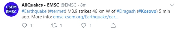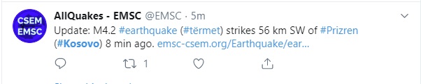 Faqja e specializuar për tërmete All Quakes – EMSC, njofton se Prizreni është goditur me tërmet 4.2 shkallë të Rihterit.