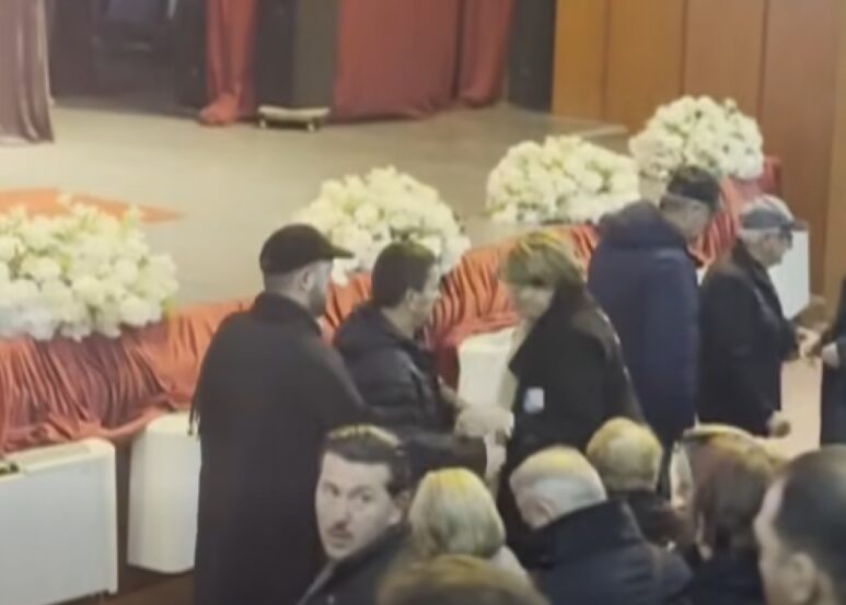 Në sallë, nëna dhe familjarë të këngëtarët po presin njerëz që kanë shkuar për t’i ngushëlluar.