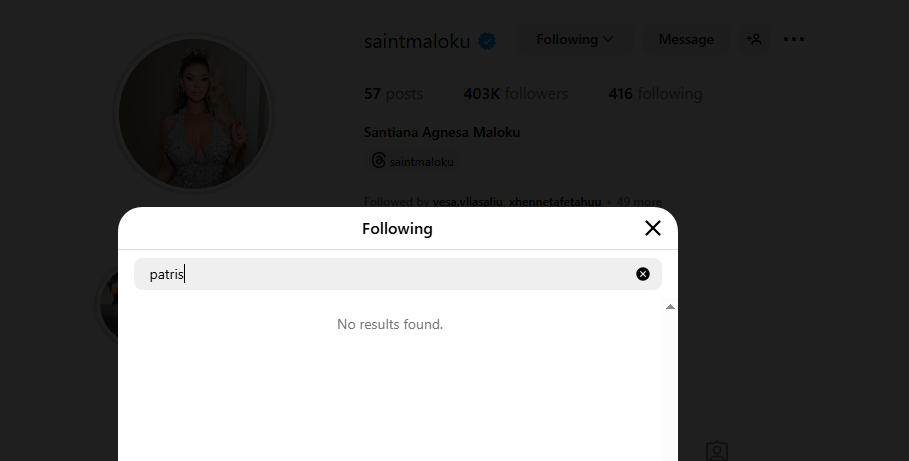 Ka disa ditë që Patrisi publikoi një foto në Instastory me Santianën, më të cilën është në lidhje prej ca muajsh.