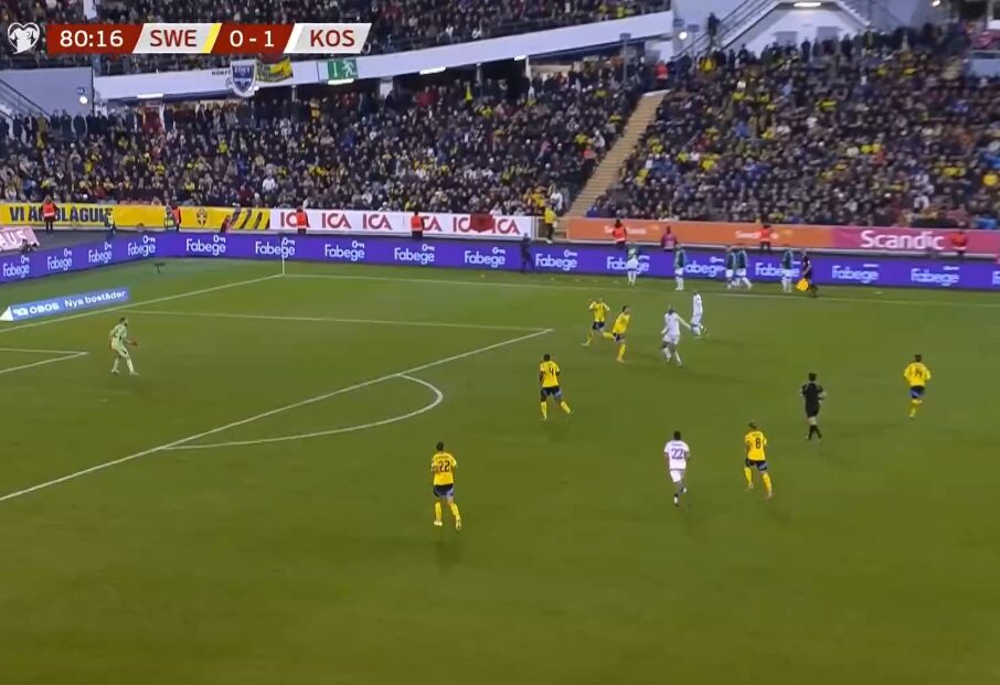 Kanë kaluar 80 minuta lojë në ndeshjen mes Suedisë dhe Kosovës, e cila po zhvillohet në stadiumin “Nya Ullevi” të Goteborgut.